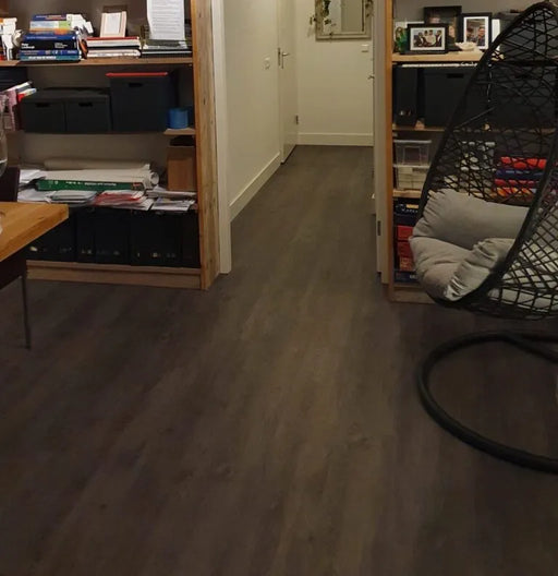 > Donkere houtlook PVC vloer