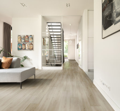 | /Kleur: Timeless White Oak | Wit Eiken Merk: Sense | PPE65 Montage: Verlijmen Afmeting plank: 22.8 x 121.9 cm Dikte: 2.5 mm Slijtlaag: 0.55 mm V-Gro...